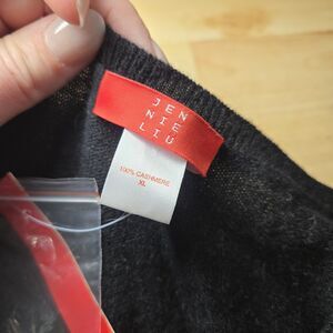 NWT JENNIE LIU Women's 100% Pure Cashmere Cardigan Sweater Button Black Size XL