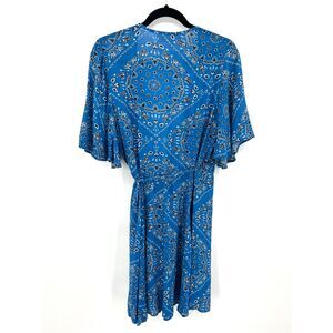 NWT JEN'S PIRATE BOOTY Blue Black Aztec Flutter Sleeve Wrap Mini Dress Medium