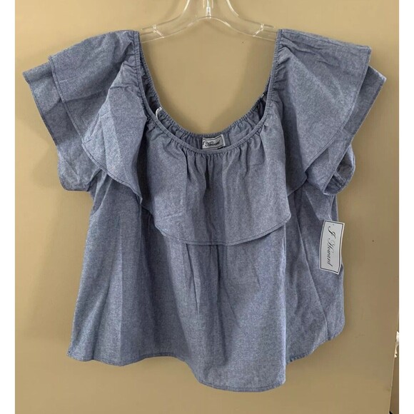 A wardrobe staple with an edgy twist that will take you from work to play, this new with tag Blue off-the-shoulder blouse by Jessica Howard is perfect for the modern woman. Made from 100% cotton, this lightweight blouse has a cap sleeve and features a pullover closure. A solid pattern and woven fabric make this blouse perfect for travel, casual, party/cocktail, and workwear occasions.