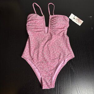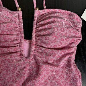 NWT JESSICA SIMPSON Womens S One-Piece Swimsuit Pink Metallic 'Sparkly Spots' Animal Print Leopard/Cheetah Bathing Suit