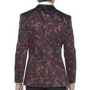 NWT JF J. FERRAR SUPER SLIM FIT SUIT JACKET BURGUNDY BIRDS 46