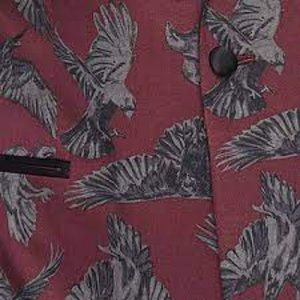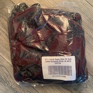 NWT (NEW IN BAG) JF J. FERRAR SUPER SLIM FIT SUIT JACKET BURGUNDY BIRDS SIZE 46.