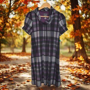 NWT JH Purple Gray Plaid Cowl Neck Sweater Dress Size Petite Medium