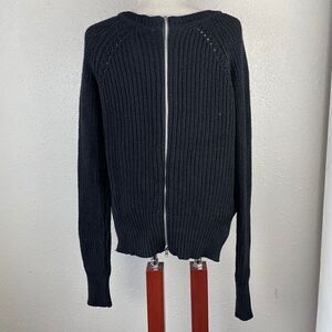 Super fun and unique black sweater top featuring a full zip up design in the back. It measures 20 inches armpit to armpit and 22 inches in length.