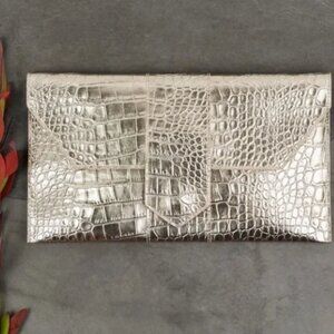 NWT JJ Winters Nikki Metallic Crocodile Clutch Vegan Leather
