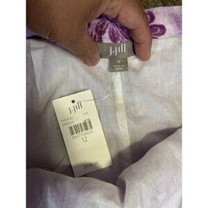 NWT JJILL Linen Maxi Purple Skirt Lined Floral Pleated Boho Beach Coastal Sz 12