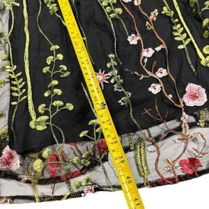 NWT JJ'S HOUSE Floral Midi Dress Sz.S Black Mesh Embroidered Fit & Flare Event