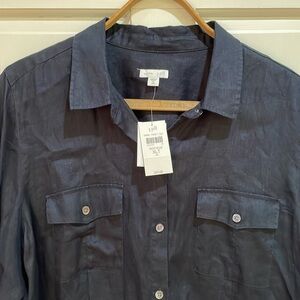 NWT J.Jill || Love Linen Deep Blue Linen Button Down; Size XL Tall