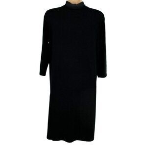 This sleek black turtleneck dress from J.Jill's Wearever Collection offers a sophisticated look with its simple lines and elegant design. Crafted with comfort in mind, it is suitable for various professional settings.