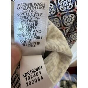Brand new with tags, this J. Jill Wearever dress features a stunning medallion tile print in navy, soft red, and white with a coordinating border hem. Made with a super-soft, stretchy rayon blend, it offers effortless comfort with a polished look. A go-to for office wear, casual dinners, or travel-ready style. Falls below the knee with a relaxed shift silhouette and 3/4 sleeves. Retail $99.00