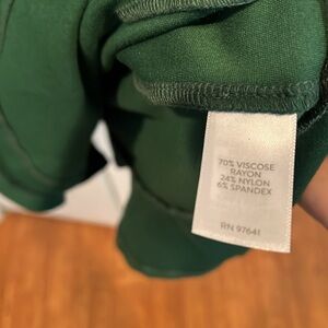 Beautiful green dress with 3/4 sleeves and flowy hem line detail.