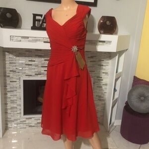 NWT JJ’s House A-line Princess square neckline with crystal brooch dress size 10