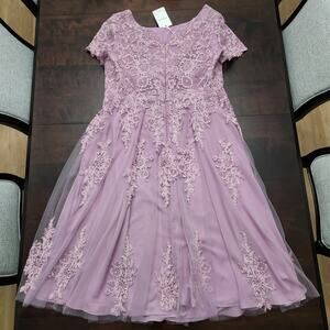 NWT JJ's House A-line Tea-Length Tulle Lace Mother Bride Dress Wisteria Size 18W