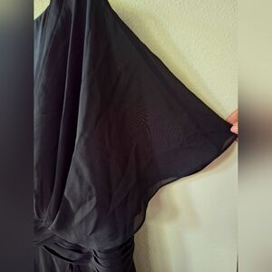 NWT JJ's House Black A-Line V-neck Chiffon Ruffle Dress Zip closure Womens Size 22 Measurements are provided in the pictures for the JJ's website.