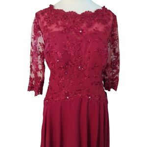 NWT JJ's House Burgundy Lace Long Gown Size 16