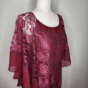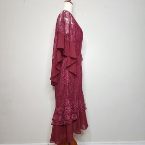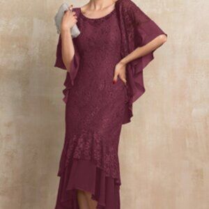 NWT JJ's House Trumpet/Mermaid Scoop Asymmetrical Chiffon Lace Mother of the Bride Dress With Beading Sequins size 10 in Cabernet.