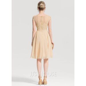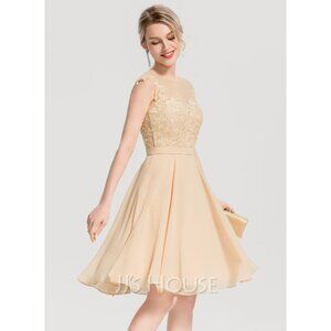 A-line Scoop Knee-Length Chiffon Lace Cocktail Dress with Appliques