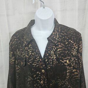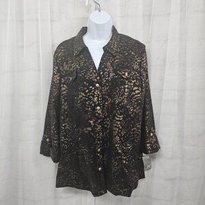 NWT JM Collection Ibiza Brown Leopard Blouse Mobwife Office L