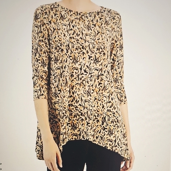 NWT JM Collection Petite Irina Impression 3/4 Sleeve Tunic PXL Coffee Cake