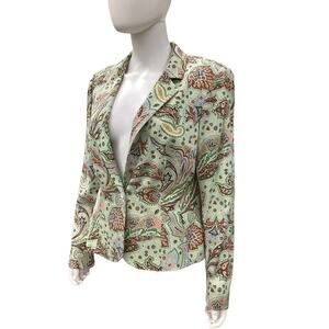 NWT J.McLaughlin Blazer Womens SZ12 Silk Cotton Spandex Blend Floral Print Green