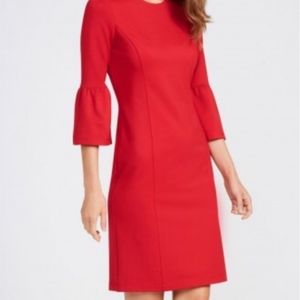 Keaton 3/4 Bell Sleeve Bainbridge Crew Neck Red Dress. Perfect for the holidays!