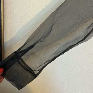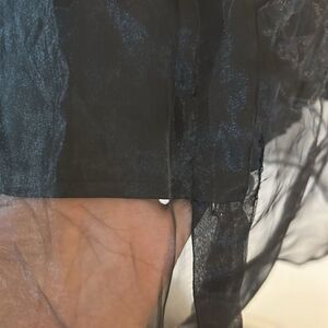 Sheer top, featuring a cropped layer underneath. Slight sheen to the fabric.