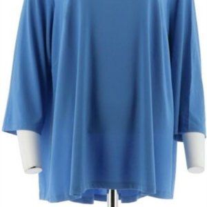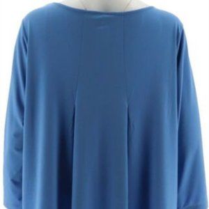 NWT JOAN RIVERS 3/4 SLEEVE PLEATED BACK TOP XXS- FRENCH BLUE