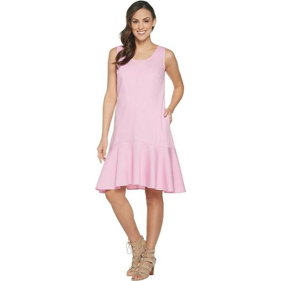 NWT JOAN RIVERS PINK REGULAR LENGTH SLEEVELESS DENIM DRESS WITH FLOUNCE MEDIUM