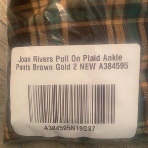 NWT JOAN RIVERS PULL ON PLAID ANKLE PANTS BROWN/GOLD 2