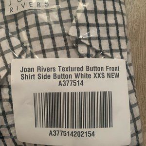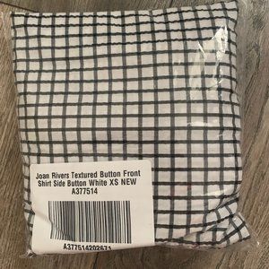 NWT (NEW IN BAG) JOAN RIVERS TEXTURED BUTTON FRONT SHIRT W/SIDE BUTTONS WHITE/BLACK SIZES XS & XXS.