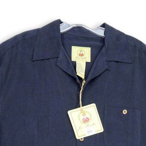NWT JOE MARLIN SILK EMBROIDERED COCKTAIL ISLE NAVY BUTTON FRONT SHIRT LARGE