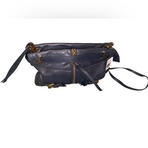 NWT JOELLE HAWKENS Nora Black Leather Buckle Crossbody Bag Navy Blue