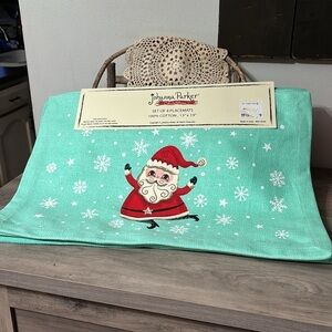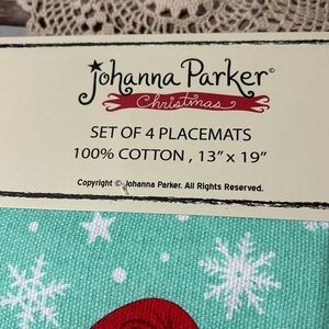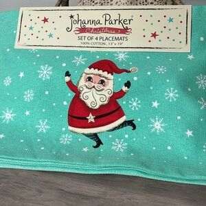 NWT JOHANNA PARKER SANTA FABRIC PLACEMATS WITH SNOWFLAKES