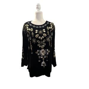 JOHNNY WAS BIYA Charlize Velvet Embroidered Tunic Blouse NWT Sz M MSRP $398