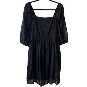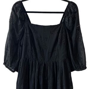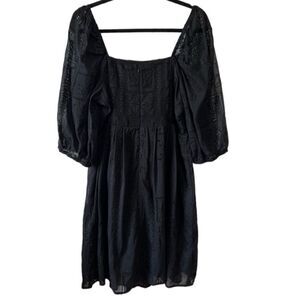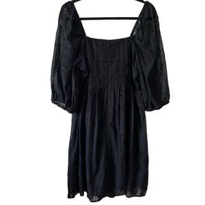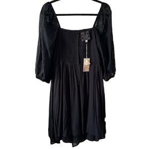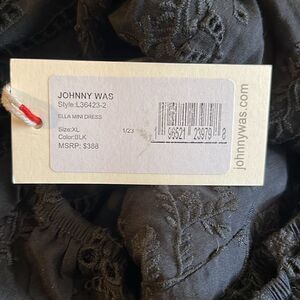 NWT- JOHNNY WAS- ELLA SILK COTTON MINI DRESS BLACK EYELET PUFF SLEEVES, Size XL