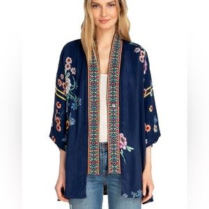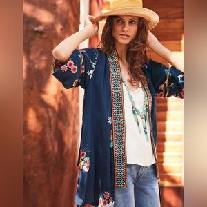 NWT JOHNNY WAS Maci Floral Georgette Reversible Kimono w/ Embroidered Trim