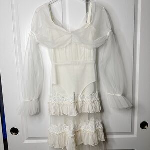 Brand new with tags, no flaws. Some photos show additional undergarments, only original dress with attached bodysuit included.