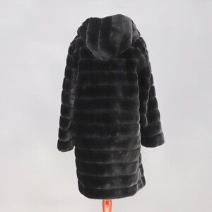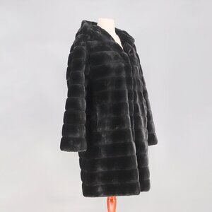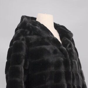 NWT JONES NEW YORK Faux Fur Grooved Hooded Heavy Weight Coat in Black Size L