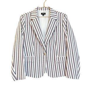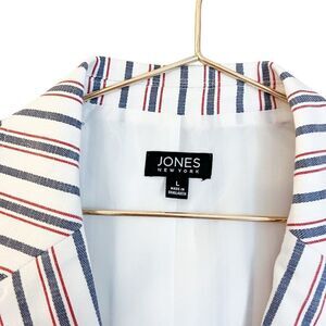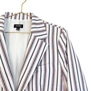 NWT JONES NEW YORK Long Sleeve Faux Double Breasted White Striped Blazer Jacket