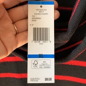 NWT JONES NEW YORK Red Sparkly Striped Cowl Neck Sweater