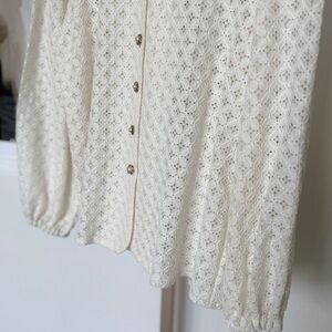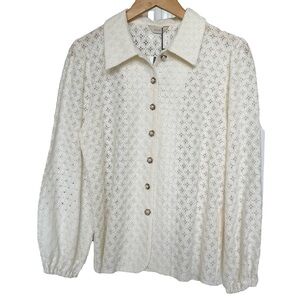 NWT! JOOR'TI Women's Ivory Collared Lace Blouse with Pearl Button Accents Size M