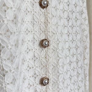 Features: Lace detailing, Pearl button accents