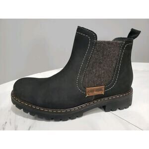 NWT JOSEF SEIBEL Black Leather MARTA Chelsea Lug Sole Ankle Boots Sz 7-7.5 EU38