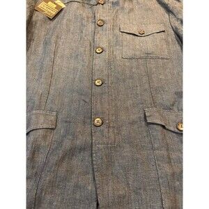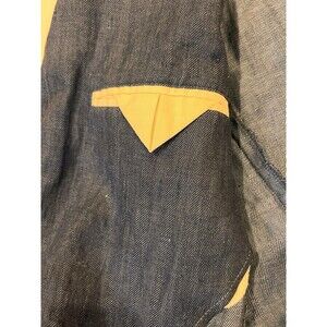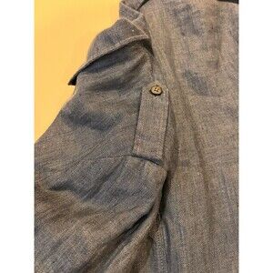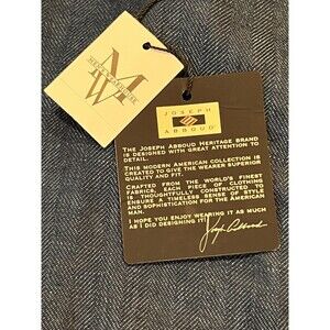 The NWT Joseph Abboud Military Jacket is a stylish and classic piece made from 100% linen in a herringbone pattern, perfect for casual occasions. The jacket features a zip button closure and a regular fit in size XL, making it a versatile addition to any man's wardrobe. The navy blue color adds a sophisticated touch, while the military style gives it a trendy edge. Made by the renowned brand Joseph Abboud, this jacket is sure to be a high-quality and fashionable choice for the modern man.