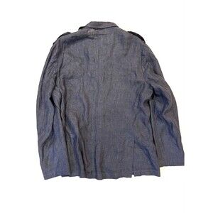 NWT JOSEPH ABBOUD Military Jacket HERRINGBONE Men XL Blue LINEN Zip Button