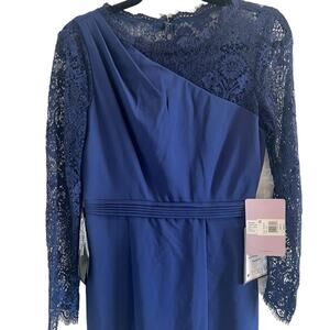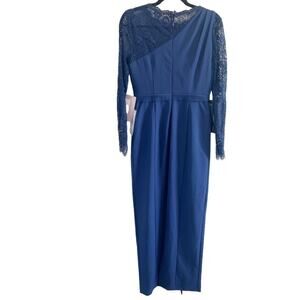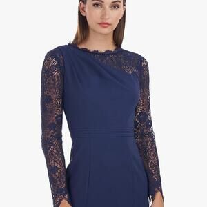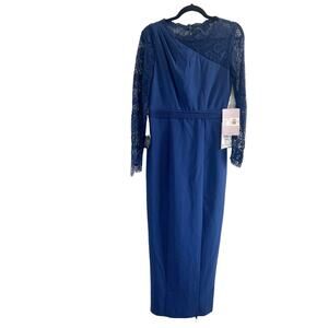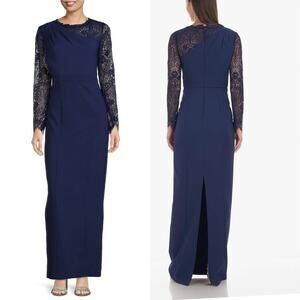 NWT JS COLLECTIONS $298 Sz 4 Women’s Maria Lace Scallop Column Gown Navy