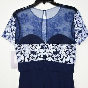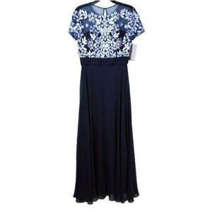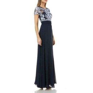 NWT JS COLLECTIONS Floral Embroidered Lace Illusion Neck Gown Maxi Dress