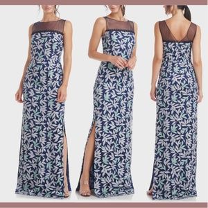 NWT JS Collections [ 14 ] Leighton Illusion Column Gown in Oxford Blue G1462