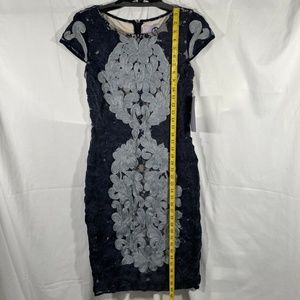 NWT $350 JS Collections [ 4 ] Contrast Soutache Sheath Dress in Blue/Cloud #Q166