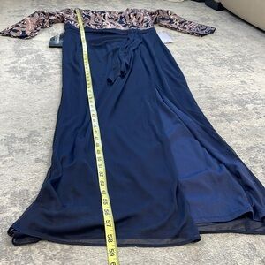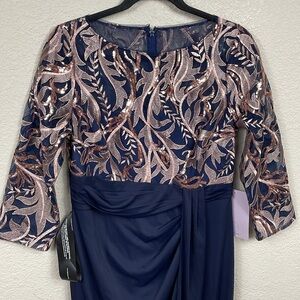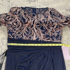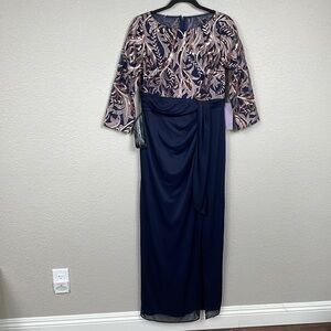 NWT JS Collections Carrie Bateau Gown Navy Blue Embroidered Sequin Sz 10